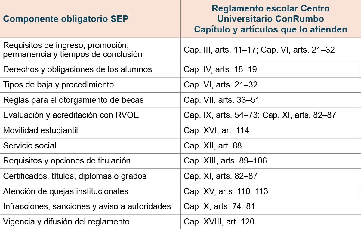 El Centro Universitario ConRumbo publicará las bases en donde señalará de manera específica cuáles son los requisitos por cubrir y las fechas para la presentación de estas, debiendo el alumno interesado cubrir con todo lo que se indique además de lo ya estipulado en el presente reglamento.